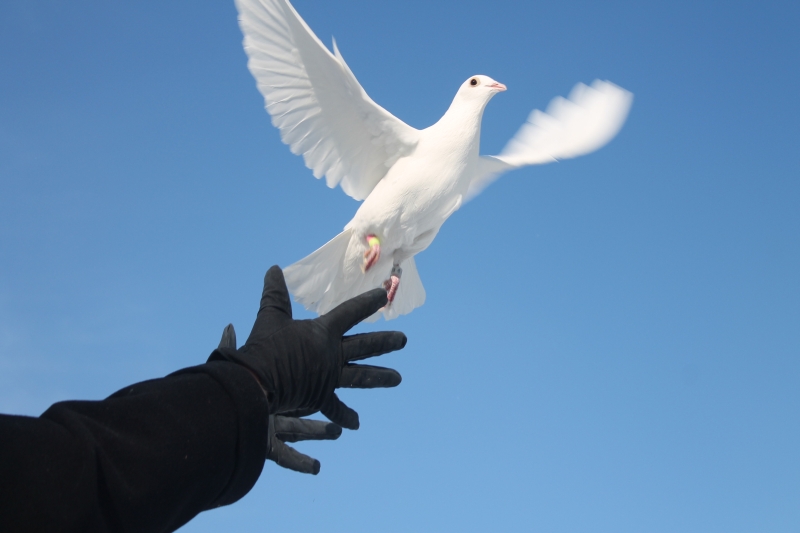 Oder, wenn Sie es wünschen, lässt der Taubenbetreuer diese Taube für Sie